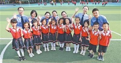 重庆检察未成年人保护工作团队代表在北碚区两江名居第一小学开展校园普法活动后与学生合影。 新华社发