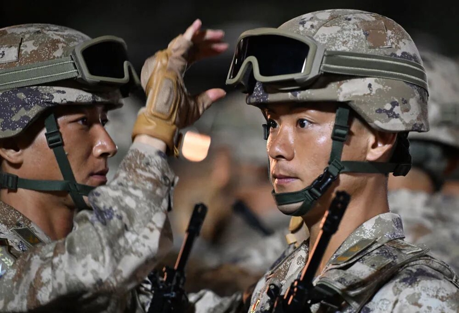 战士们身如青松挺拔