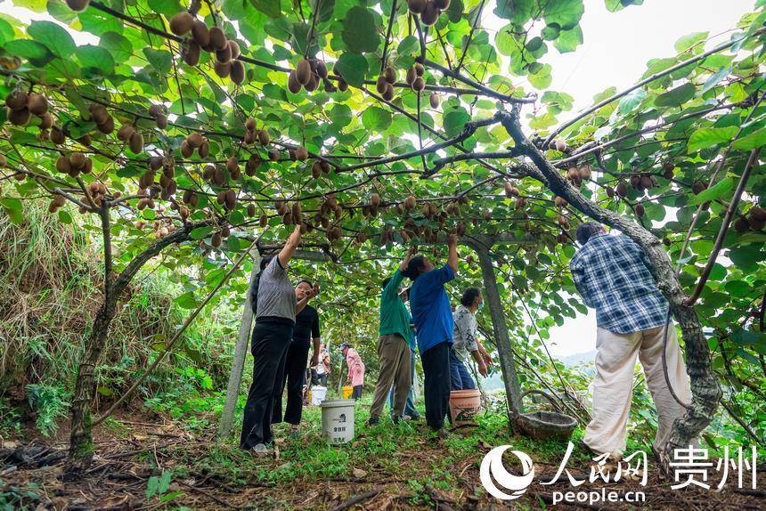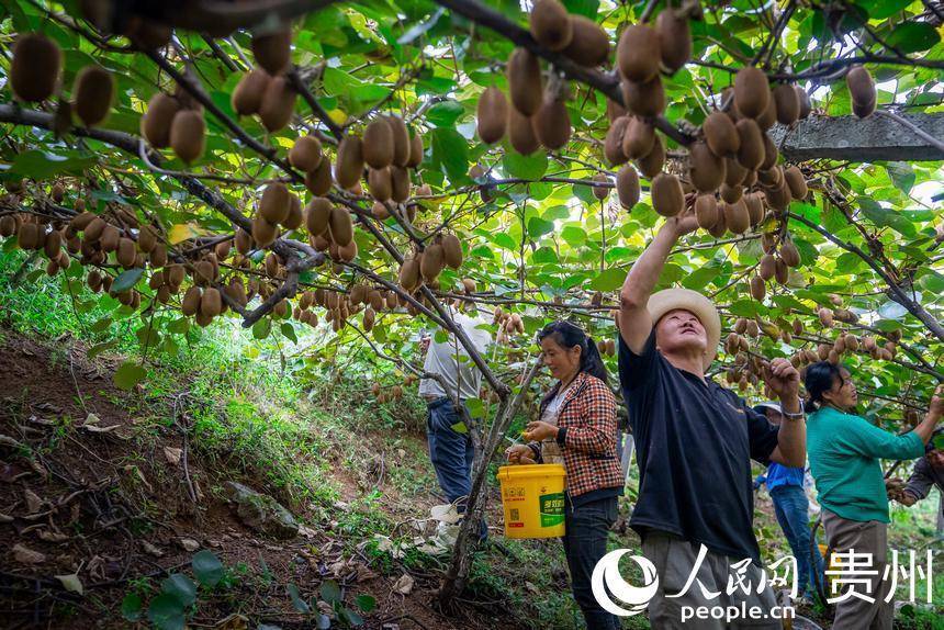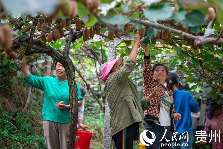 村民在猕猴桃园内采摘达到采摘标准的猕猴桃。人民网记者 涂敏摄